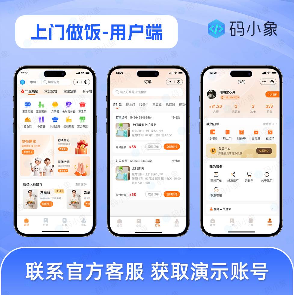 上门做饭代理版小程序源码(PHP版),城市代理版多端管理,兼容多种模式-码小象源码