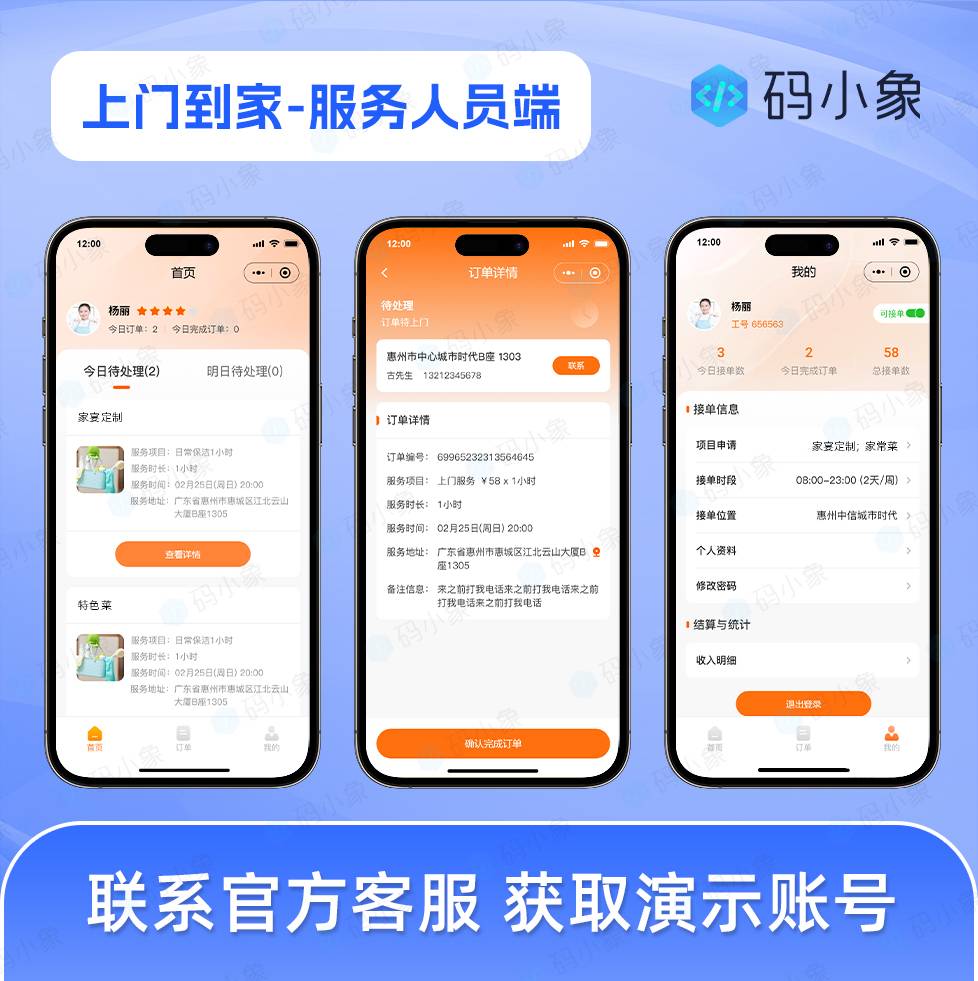家政系统小程序源码,支持自营入驻两种运营模式+抢单派单模式结合-码小象源码
