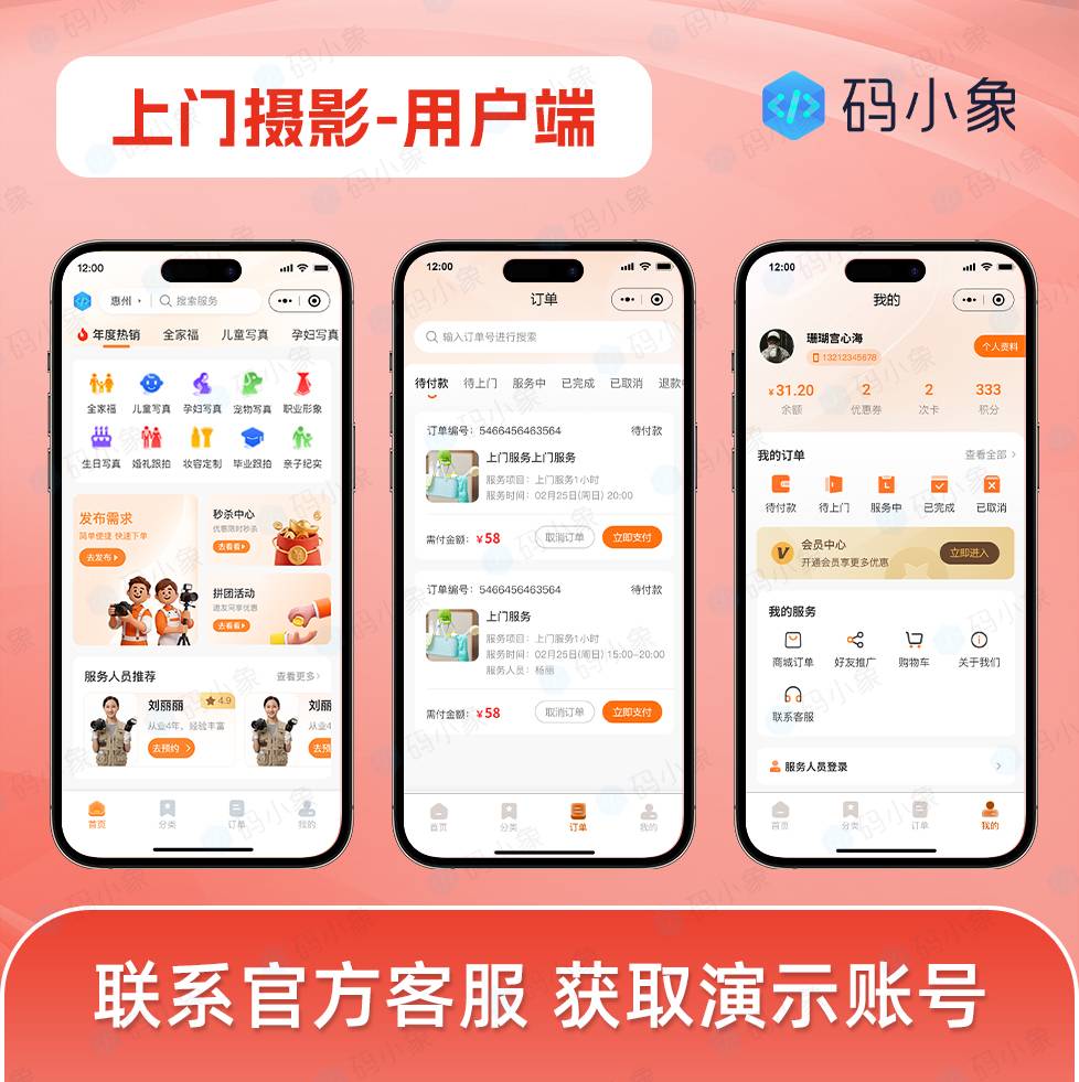 上门摄影小程序源码代理版(PHP版),城市代理版多端管理,兼容多种模式-码小象源码